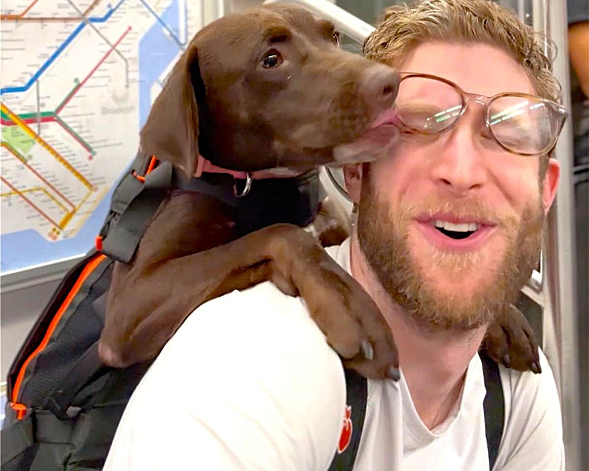 La buona notizia del giorno ■ Nella Grande Mela un uomo ha cambiato la vita a decine di cani in cerca di adozione con una piccola rivoluzione di tenerezza. Si chiama Bryan Reisberg il regista e videomaker di 37 anni che porta i cani dei rifugi in giro per la città – spesso a spalle o nello zaino –